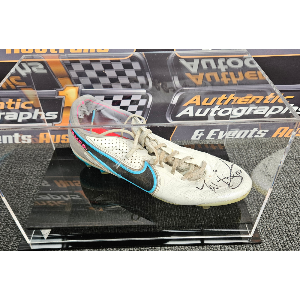 Personally signed & match worn boot by champion Travis Boak with the boot coming in a perspex case